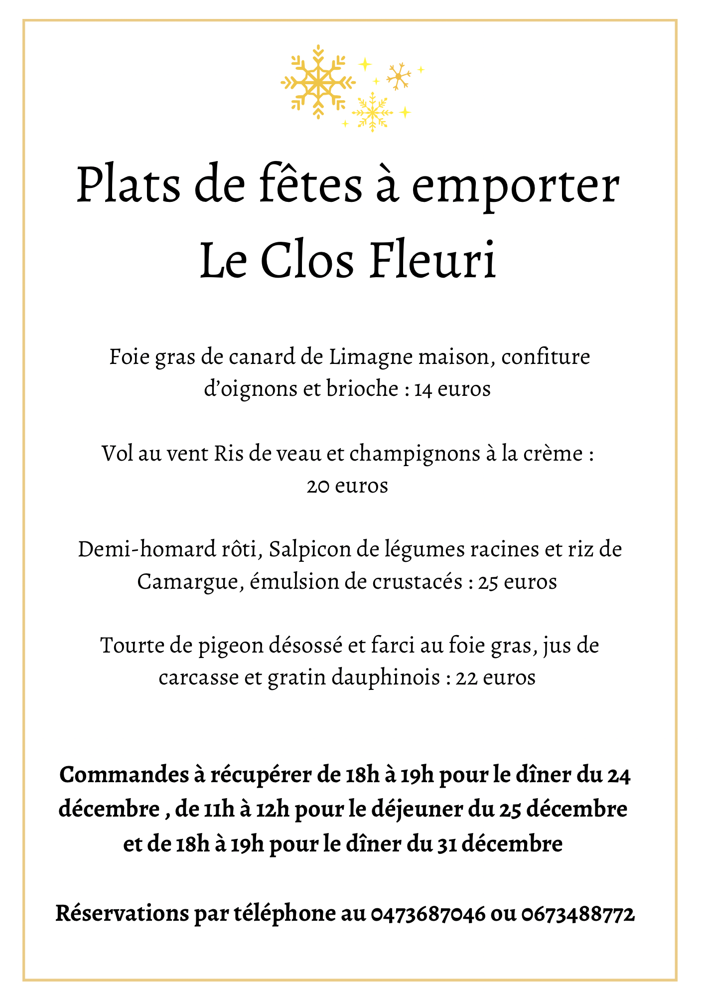 Le restaurant Le Clos Fleuri vous propose une cuisine gourmande en privilégiant les produits de saison.