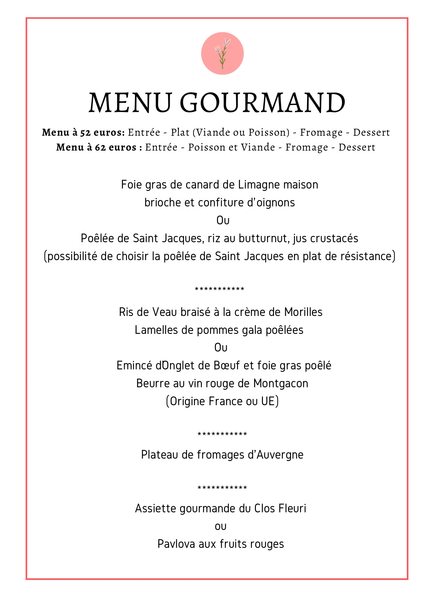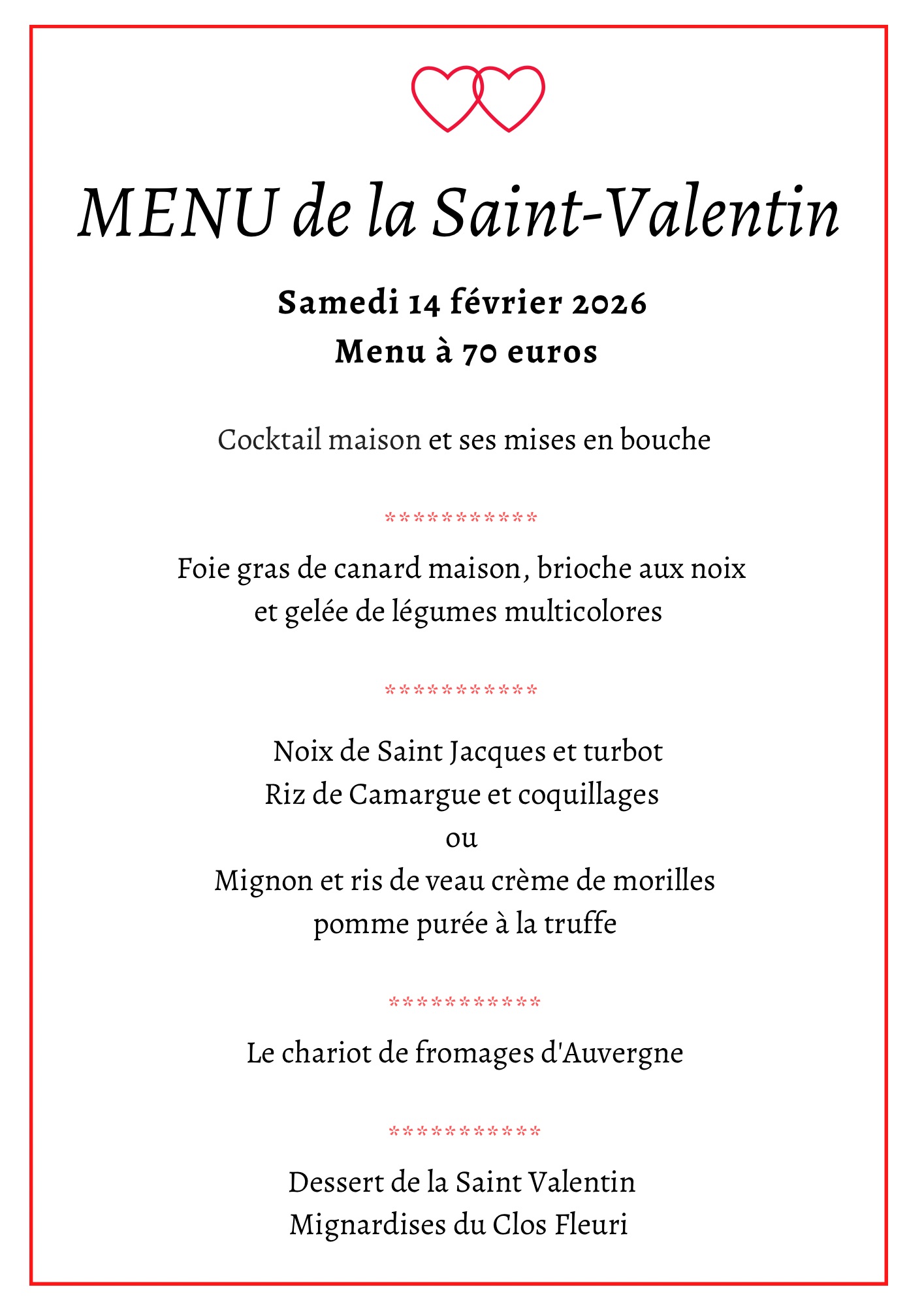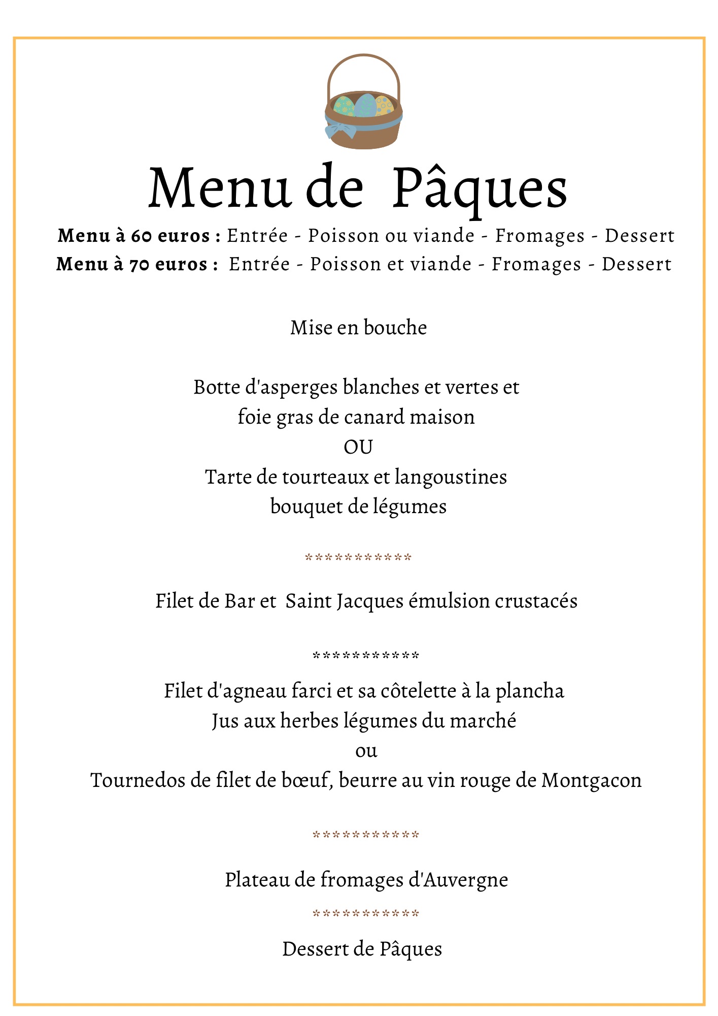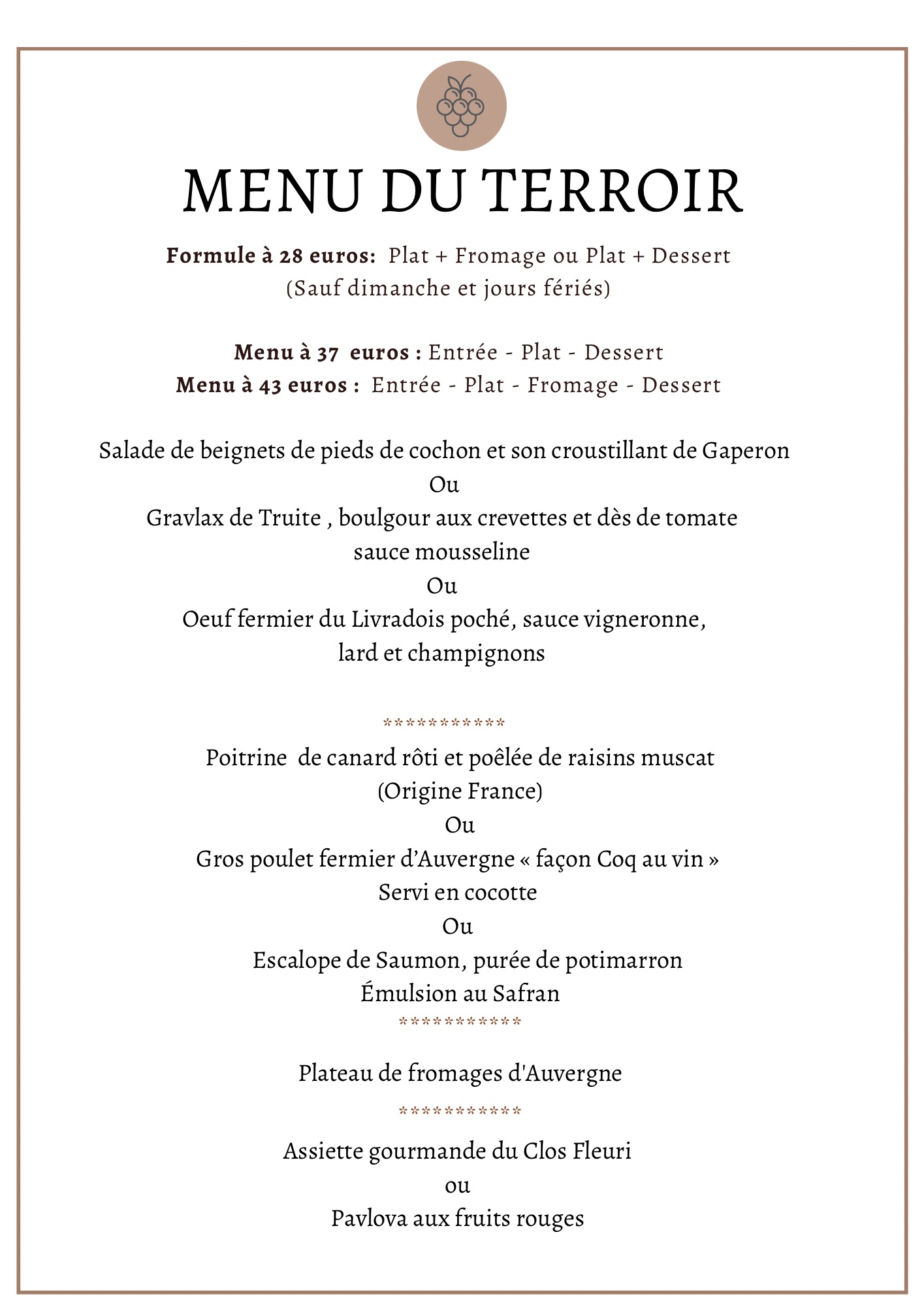 Le chef membre des Toques d'Auvergne est très heureux de vous accueillir pour vous faire découvrir sa carte de saison (un menus gourmand et un menu du terroir).